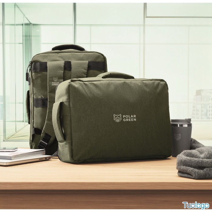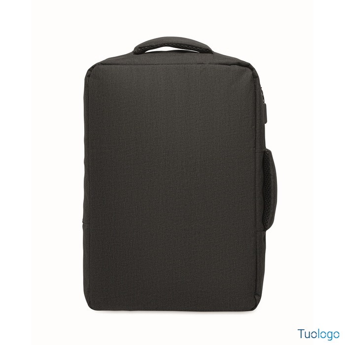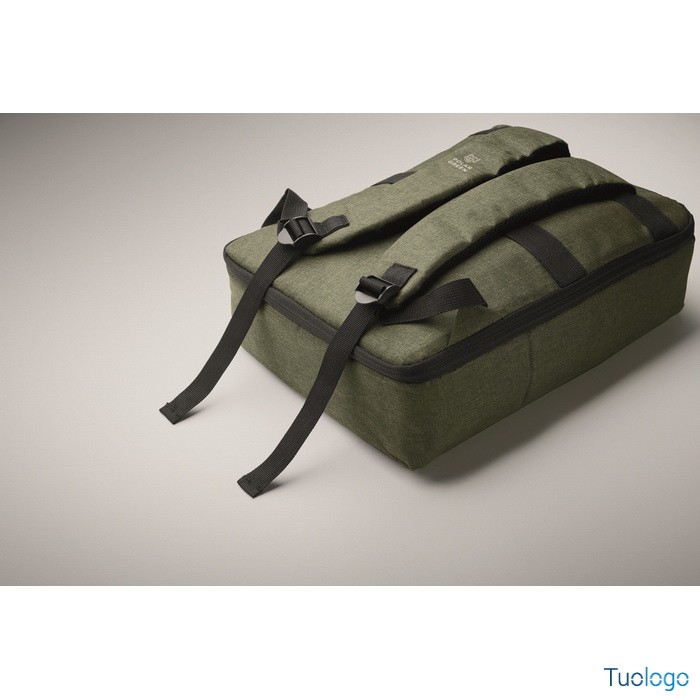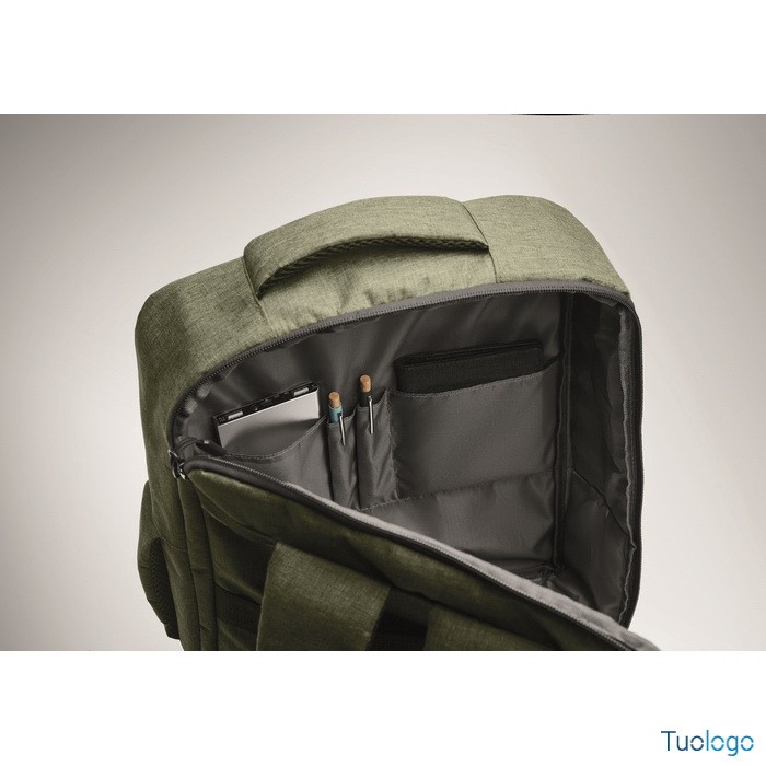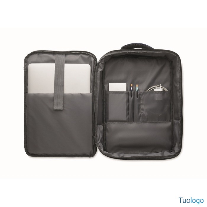 Zaino Garlua. Zaino sottile per laptop da 15 pollici in 300D RPET con apertura a 180 gradi, 2 tasche interne, 2 tasche interne per penne. Dimensioni: cm 41x29x11.