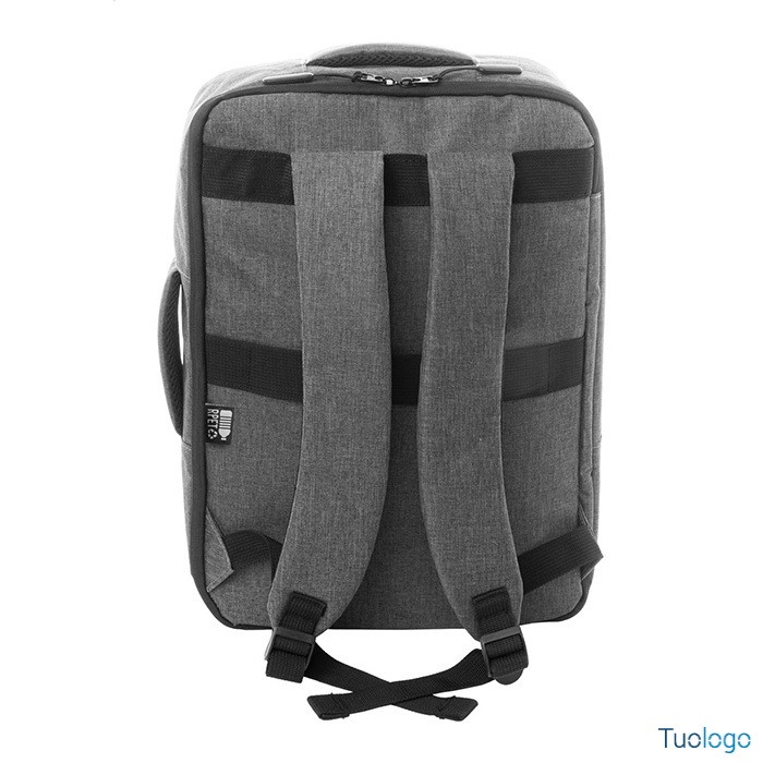 Zaino impermeabile in RPET Mapan. Zaino e borsa portadocumenti in poliestere 300D RPET con scomparto chiuso da cerniera, scomparto imbottito per laptop. Dimensioni: cm 28×44×9,5.