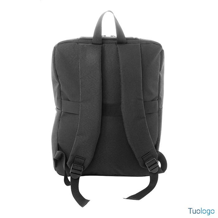 Zaino in poliestere Diambo. Zaino in poliestere 600D RPET con scomparto principale e 2 tasche chiusi da cerniera, tasca laterale, scomparto imbottito per laptop,cinghia trolley, etichetta. Dimensioni: cm 30×40×12.