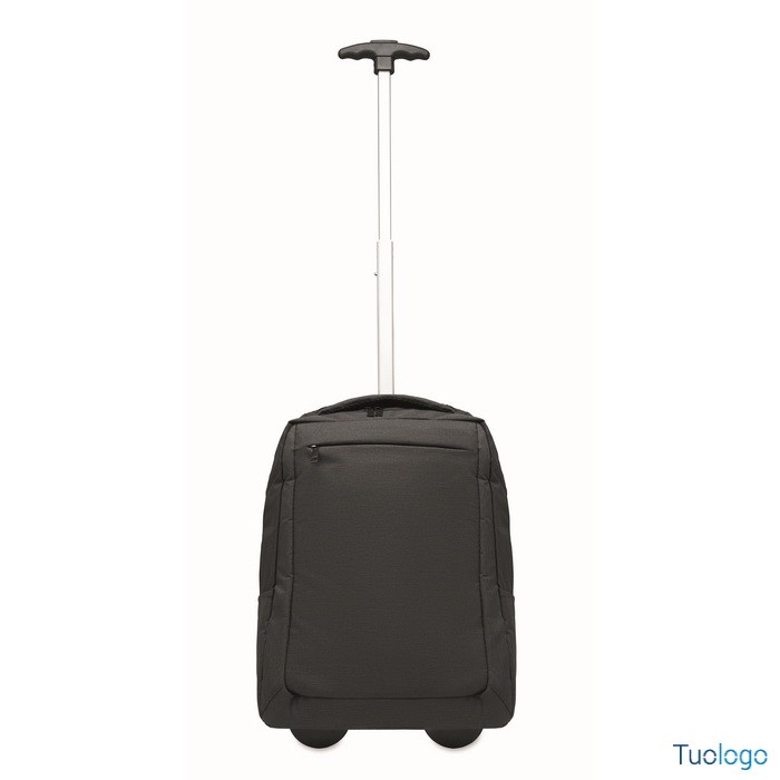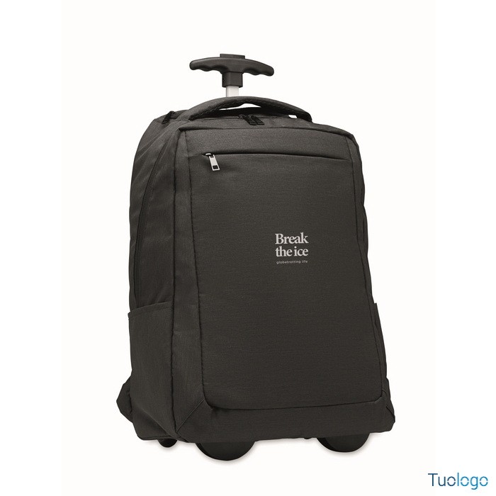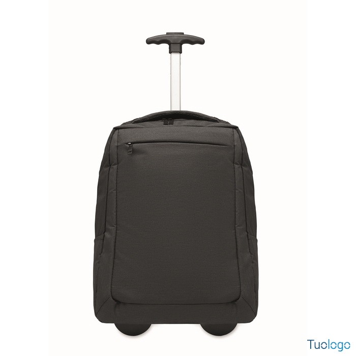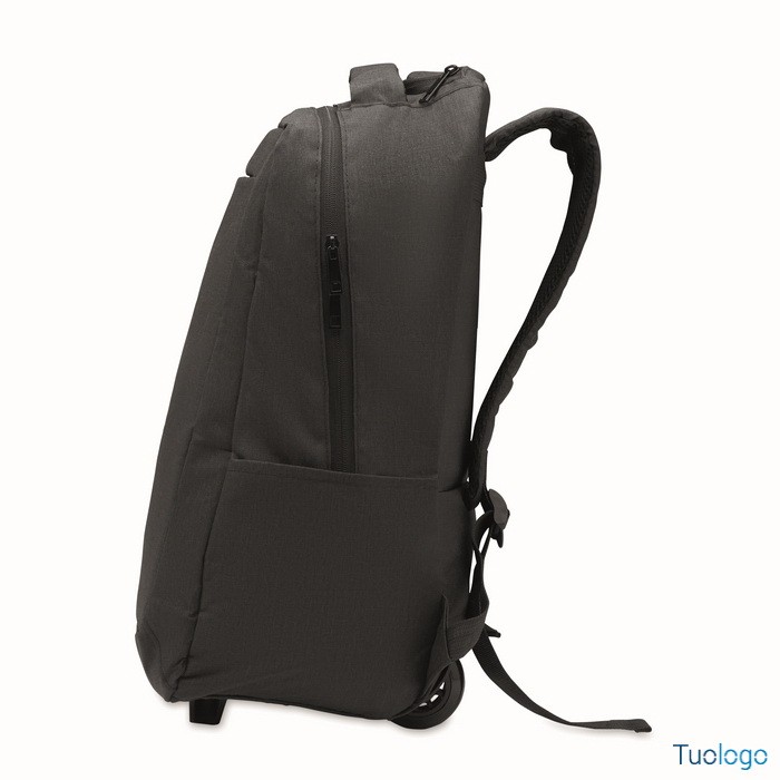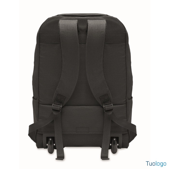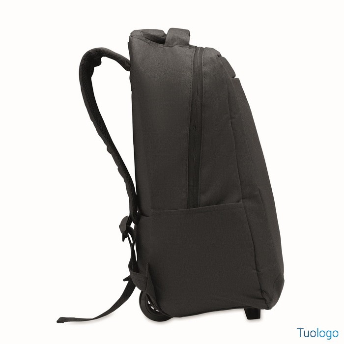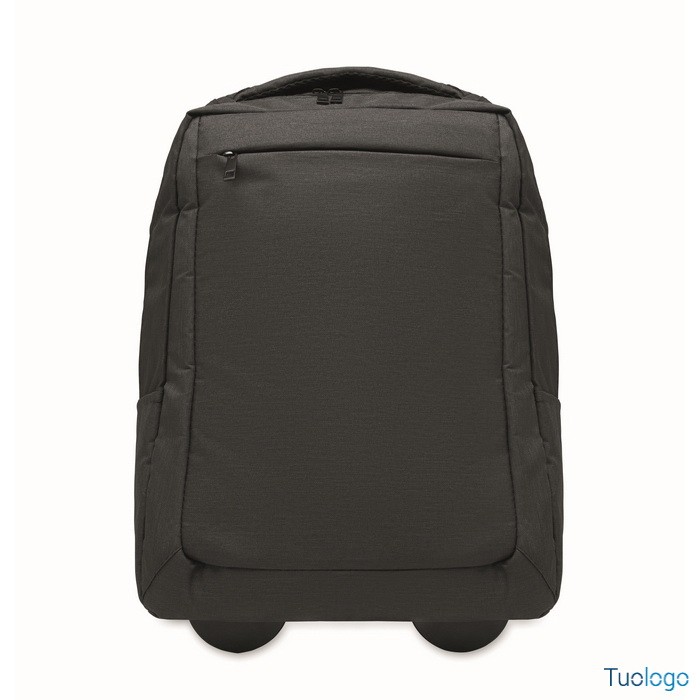 Zaino laptop Dankiv. Zaino per laptop con ruote in poliestere 600D RPET. Uno scomparto interno per laptop da 15 pollici. Tasca frontale con cerniera. Due tasche laterali a scorrimento. Dimensioni: cm 31X19X47.