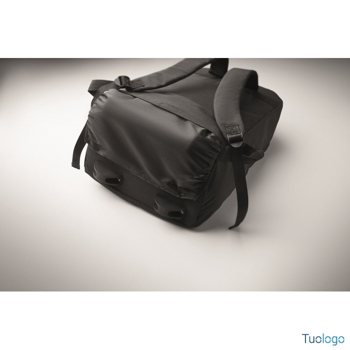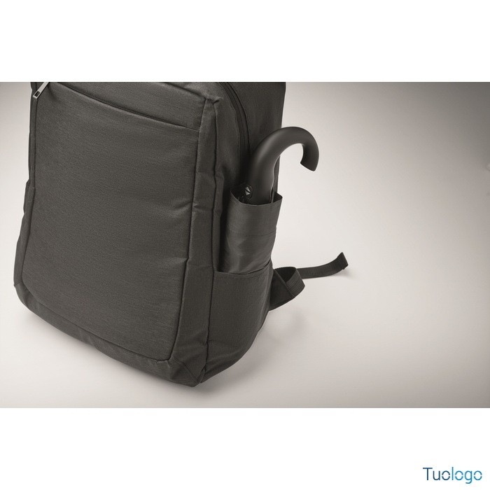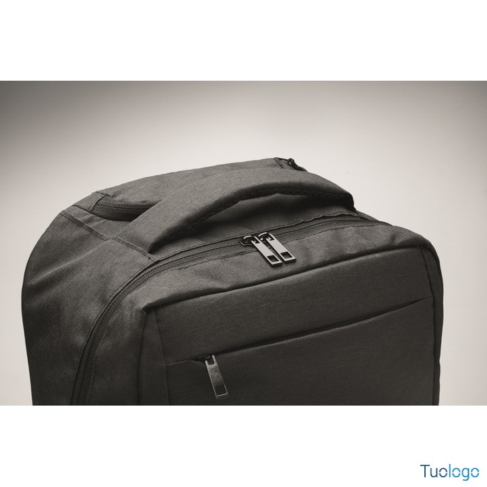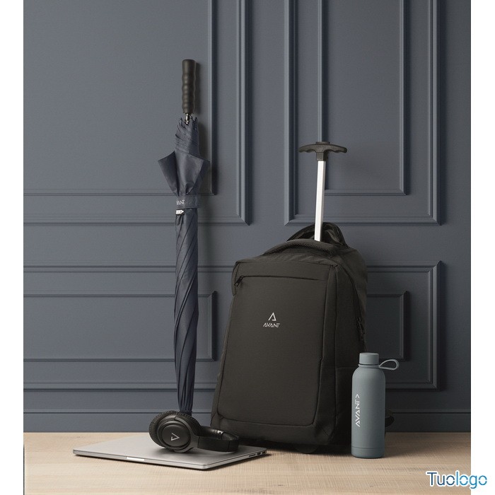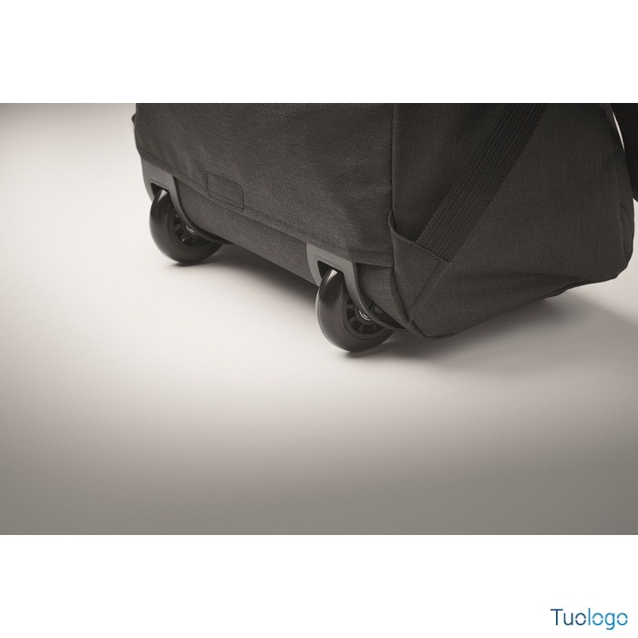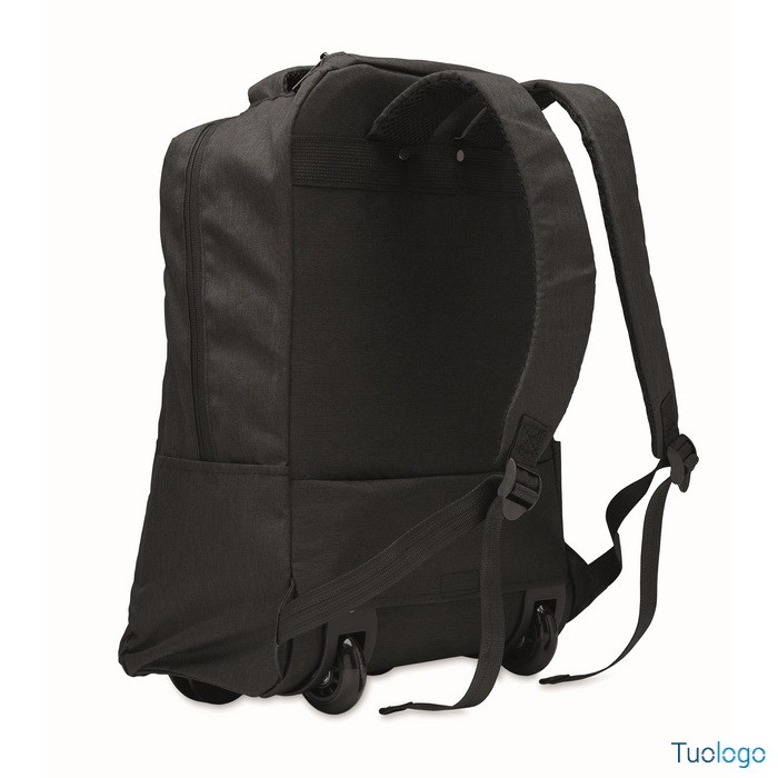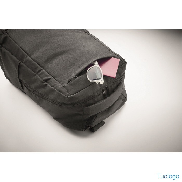 Zaino laptop Dankiv. Zaino per laptop con ruote in poliestere 600D RPET. Uno scomparto interno per laptop da 15 pollici. Tasca frontale con cerniera. Due tasche laterali a scorrimento. Dimensioni: cm 31X19X47.