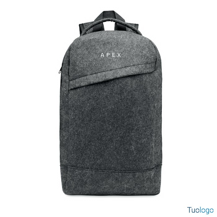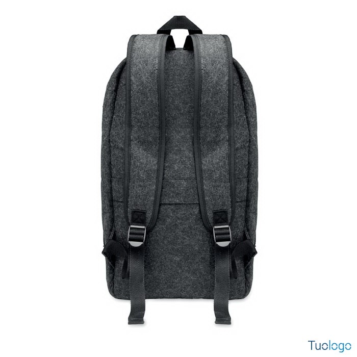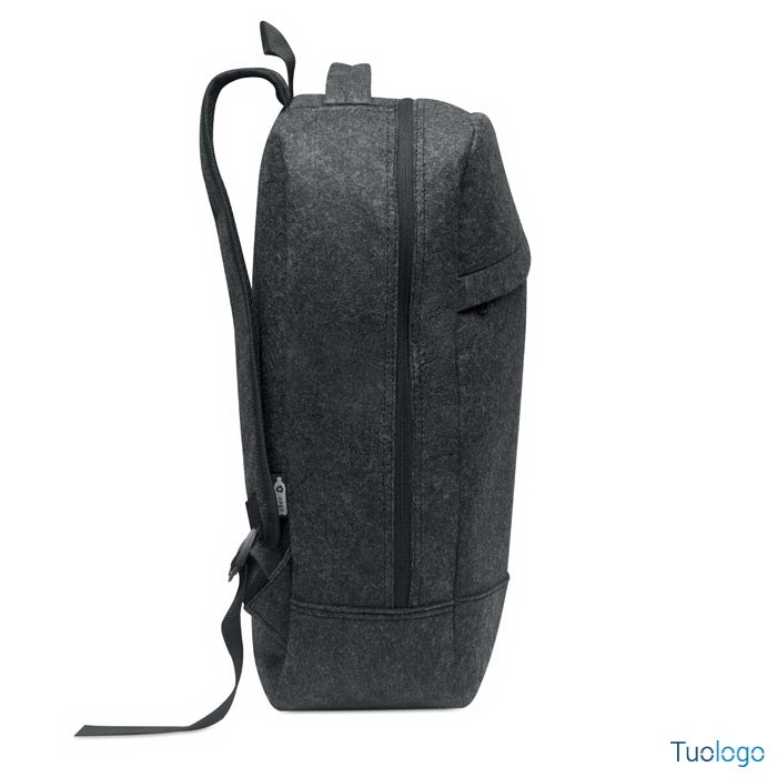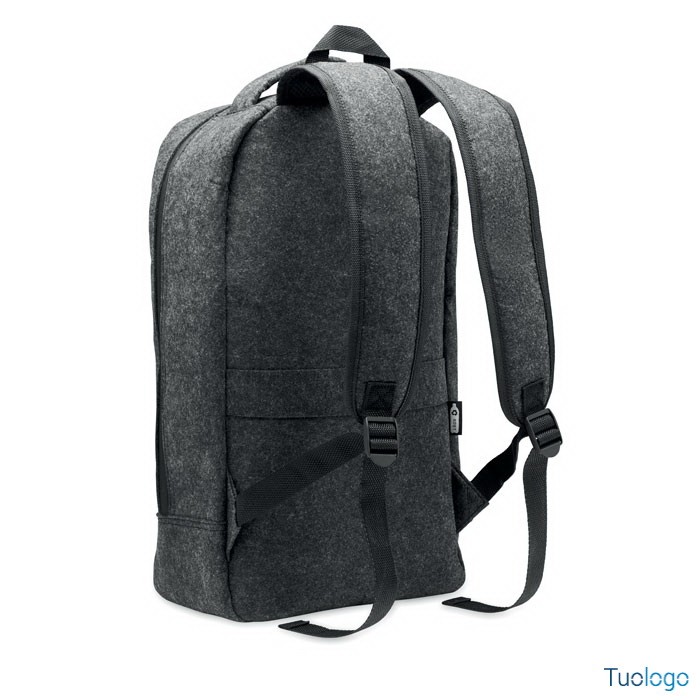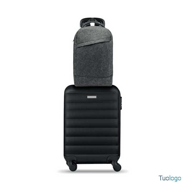 Zaino porta computer Lopigna. Zaino laptop 13 pollici in feltro RPET con spallacci e tracolla con scomparto principale interno. Scomparto con cerniera interna. Porta trolley sul retro. Dimensioni: cm 42x32x45.