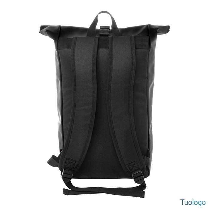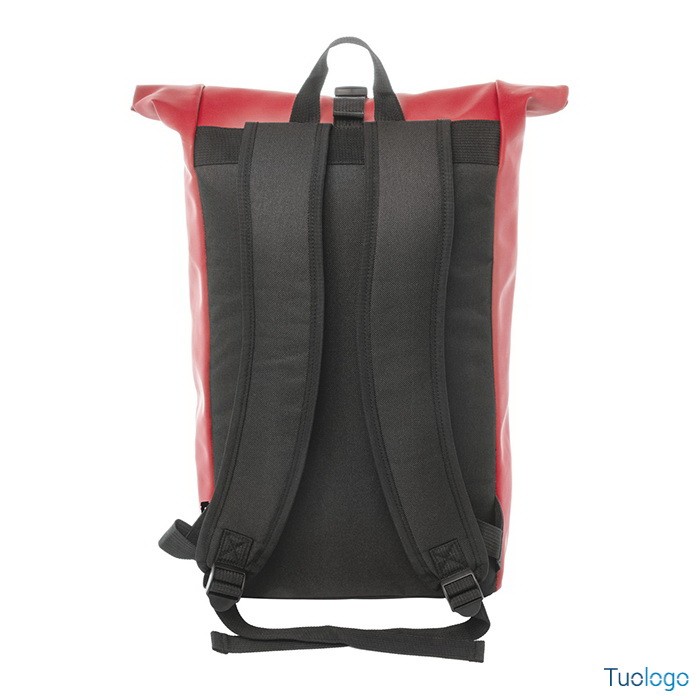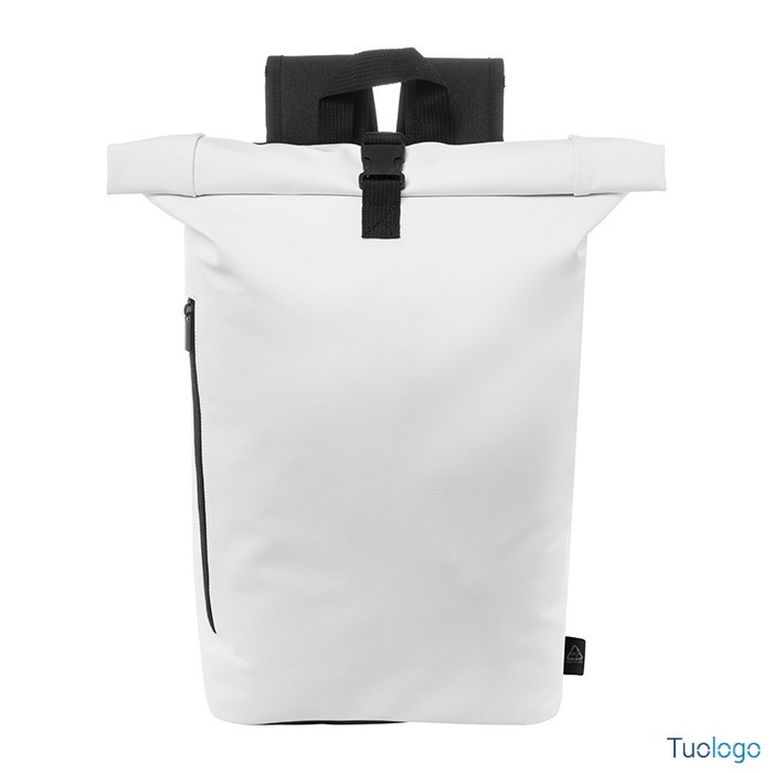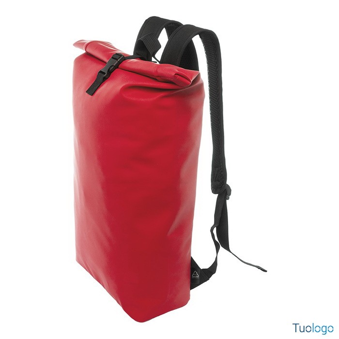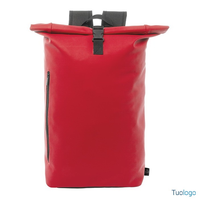 Zaino rolltop impermeabile in pelle Sipot. Zaino rolltop impermeabile in pelle PU riciclata con chiusura a fibbia, tasca frontale con cerniera, scomparto imbottito per laptop. Dimensioni: cm 27,5×49×13.