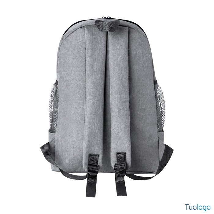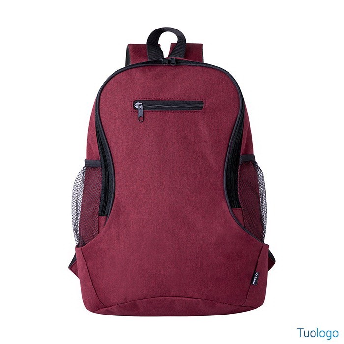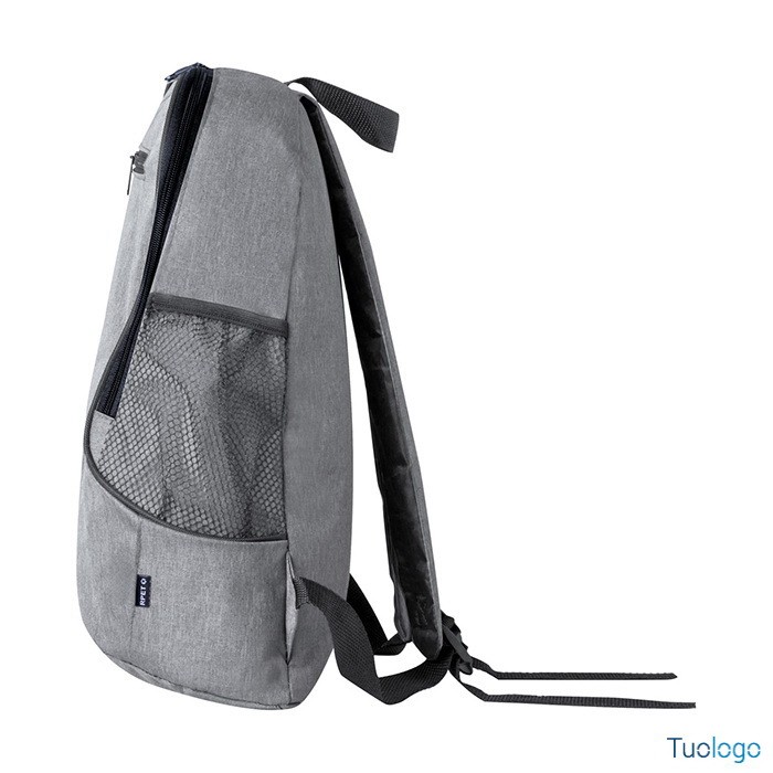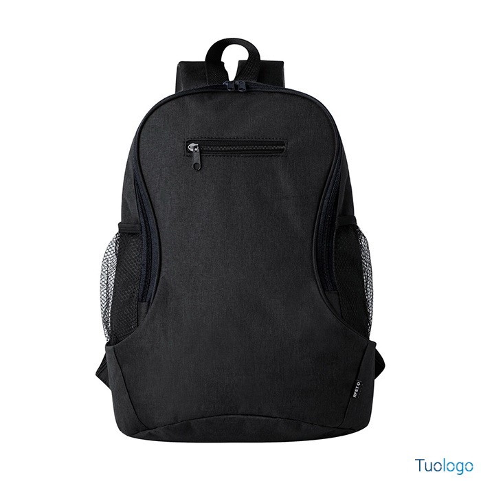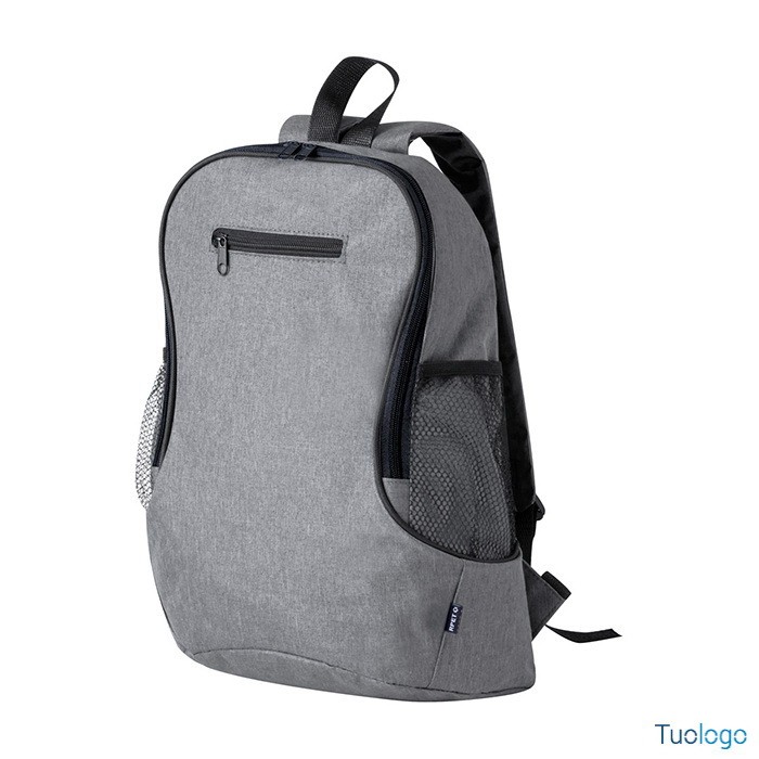 Zaino RPET Elko. In poliestere 300D RPET, con schienale e spallacci imbottiti, tasche laterali in rete, tasca con zip, etichetta RPET. Dimensioni: cm 30x40x18.